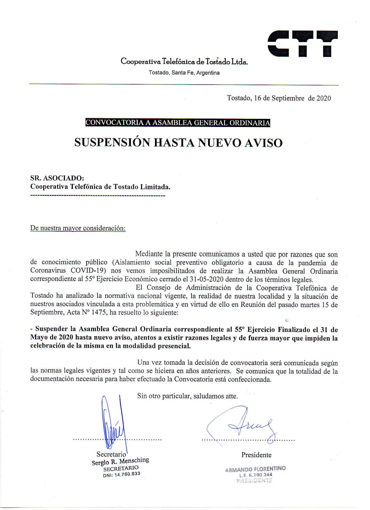 Suspensión de Convocatoria a Asamblea 18 septiembre 2020 By CTTonline La CTT les informa que por razones de conocimiento público (COVID-19) queda suspendida la Asamblea General Ordinaria hasta nuevo aviso.... READ MORE