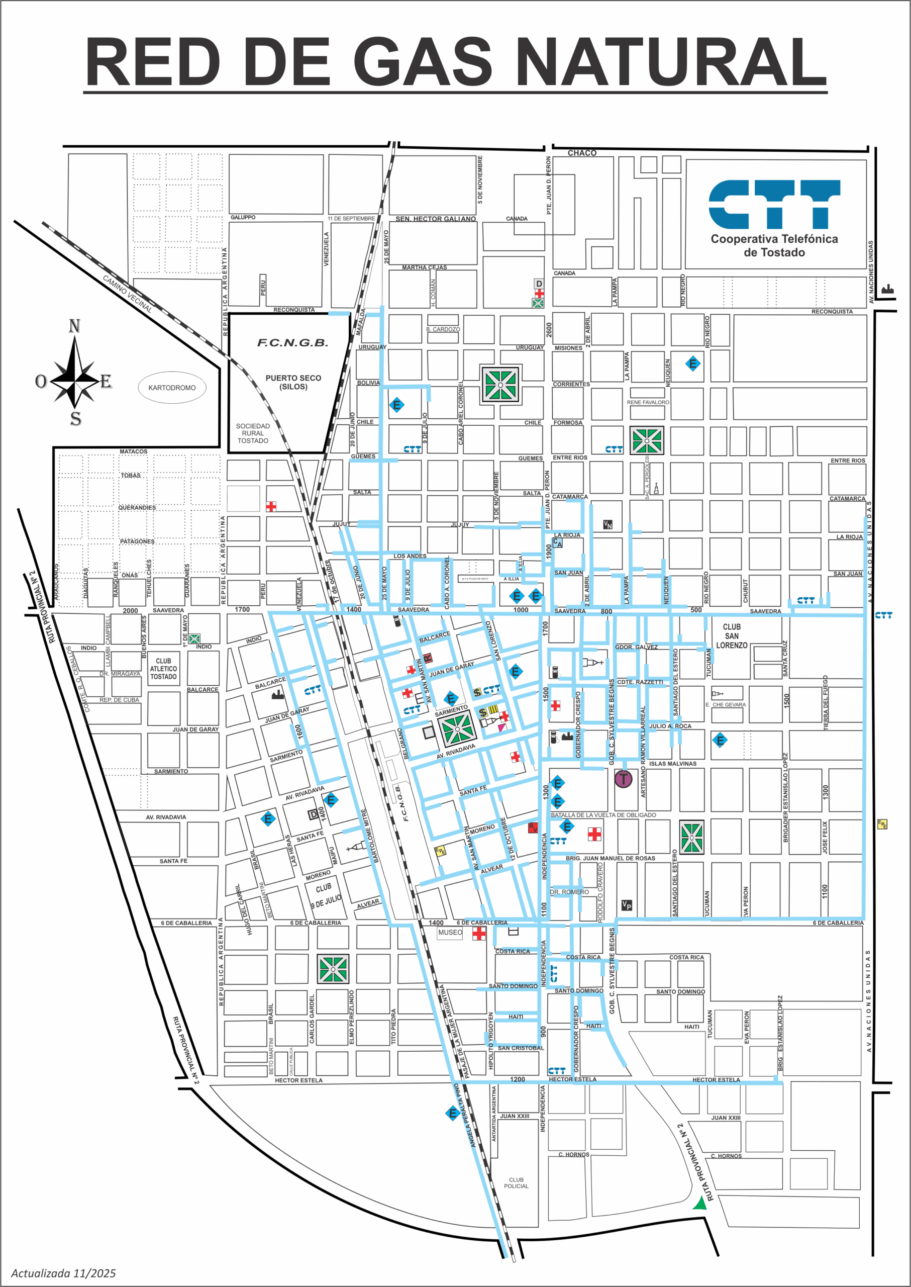 El Servicio de Gas Domiciliario por Red se encuentra habilitado desde el 24 de septiembre de 1994 y por Resolución ENARGAS Nº 126 del 24 de Febrero de 1995 se otorgó a nuestra Cooperativa calidad de Subdistribuidora de Gas en la Ciudad de Tostado.